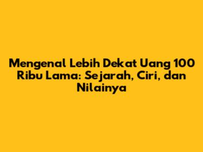 Hai guys! Kalian pasti sering banget kan lihat atau bahkan punya uang 100 ribu? Nah, kali ini kita bakal ngobrolin tentang uang 100 ribu lama. Bukan cuma sekadar lembaran kertas, uang ini punya sejarah panjang dan cerita menarik di baliknya. Kita akan bahas mulai dari sejarahnya, ciri-cirinya yang khas, hingga nilai jualnya bagi para kolektor. Yuk, simak ulasan lengkapnya!
